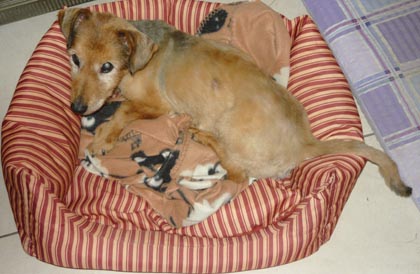 MAXI: dieser lebensfrohe kleine Hund hatte endlich seine Familie gefunden, wo er eine glückliche Zeit verbrachte. Nicht einmal 2 Jahre waren ihm vergönnt. Es wurde die Diagnose "Krebs" gestellt. Sein ganzer Körper war voller Metastasen. Man konnte ihn nicht mehr retten, sondern nur noch erlösen.